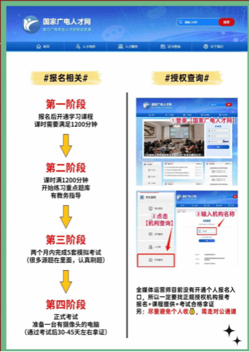 1、考试时间:开课后根据自己的学习进度,满足完成课时1200分钟以及完成模拟考试后便可申请正式考试;2、考试形式为线上考试;3、考试内容涵盖新媒体运营、音视频制作技术、内容策划与传播等多个方面。
