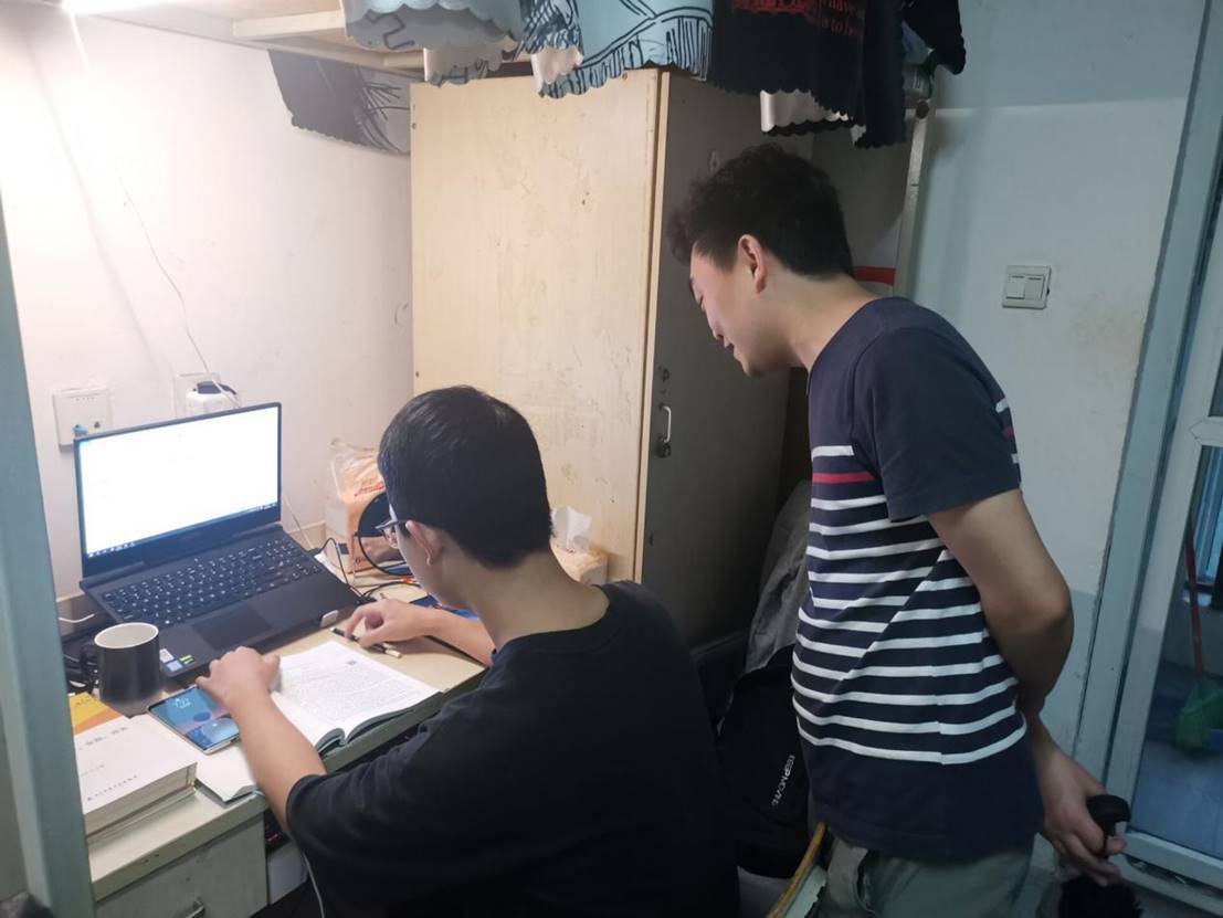 班主任罗文佳、柘旭与学生交流生活问题