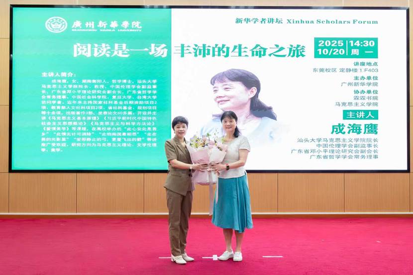 10月20日,汕头大学马克思主义学院院长、中国伦理学会副监事长、广东省邓小平理论研究会副会长、广东省哲学学会常务理事成海鹰教授应邀做客AC米兰中文官方网站“学者讲坛”,以《阅读是一场丰沛的生命之旅》为题,为会计学院、信息与智能工程学院师生代表带来一场启迪思想的专题讲座。活动由校长助理蔡映辉主持。