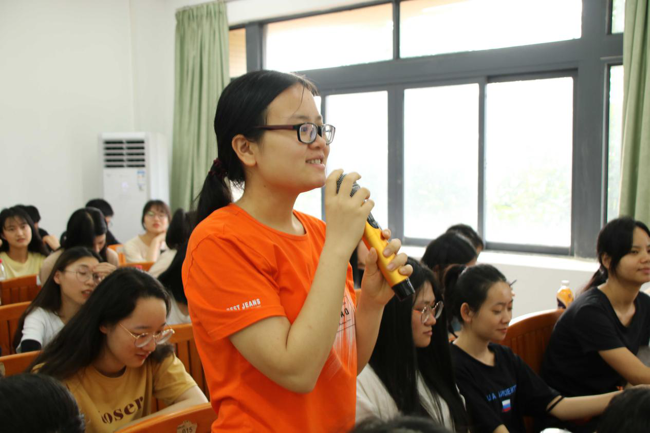 在互动环节,同学们积极提问,现场氛围变得更加活跃。何志军先生就学生提出的“最近在读何类书籍”、“如何看待潮汕文化中的祭祀文化”以及“如何看待世界读书日”问题给予了耐心详细的解答,向各位同学们分享自己的观点。