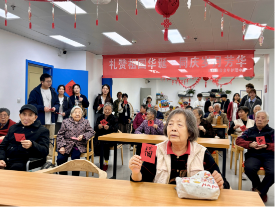 10月11日,学院党建服务中心组织学生代表前往成都成华天府众合老年护理中心,为老人们送“福”。这些“福”字不仅寓意着幸福安康、福运连连,更是传递了青年对老人们的敬意和祝福。