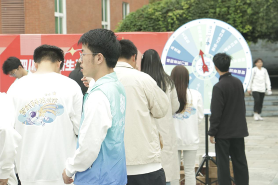 限时赛结束后,一场激动人心的抽奖活动将现场气氛推向了高潮。在光华广场上,琳琅满目的奖品摆放在展示桌上,同学们围聚一起,目光紧盯着转动的抽奖转盘,期待着能抽中自己心仪的奖品。随着转盘的缓缓停止,同学们都获得了丰厚的奖品,这不仅是对他们努力付出的肯定,更是他们丰富校园生活的美好见证。