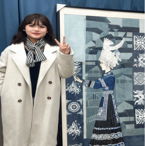 文化与教育学院学生李婷与画作《苗疆少女》