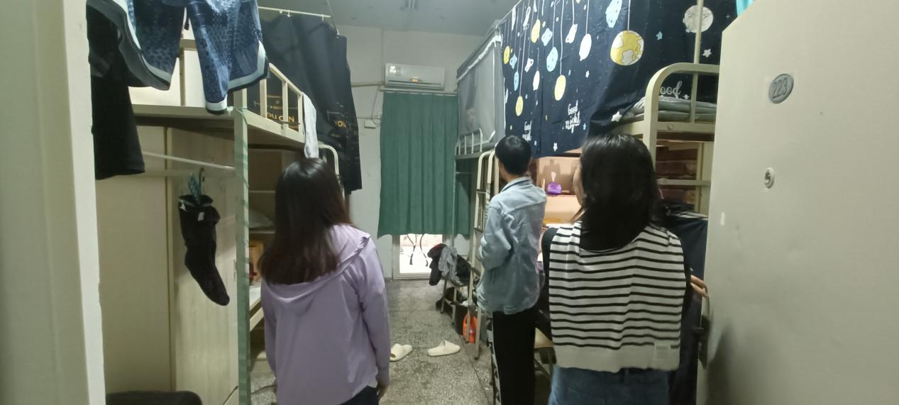 为保障校园安全稳定,落实安全稳定工作,做好学生宿舍安全隐患排查工作,创造安全健康的生活环境,10月16日下午,国际教育学院直属党支部书记詹议带领辅导员、行政教师团队深入学生寝室走访,开展安全隐患大排查、大整治工作专项行动。