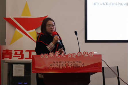 “青”春蓄力,以梦为“马”,驰骋在希望的田野上。课堂上,为深入开展习近平新时代中国特色社会主义思想主题教育,李涵讲述了作为团员青年应肩负的责任与担当。回望百年征程,光辉岁月铸就了无数辉煌,众多团员青年志存高远,将个人理想融入中华民族伟大复兴事业中,他们在实现梦想的征途中脚踏实地,挥洒青春热血,为祖国建设添砖加瓦。如今,青年们更要勇担新时代的文化使命,为建设美丽富饶的文化社会贡献出青年的智慧和力量。