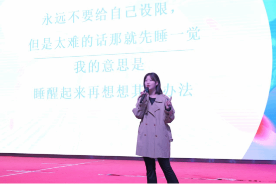 活动伊始,洪晚秋以“洪波涌起,人间忽晚,山河已秋”的诗意语言为引,深情回顾了自己的大学生活。在校期间,她凭借卓越表现荣获国家奖学金、四川省优秀毕业生等多项荣誉。洪晚秋从个人求学经历出发,分享了如何在抖音等平台获取知识、提升技能的心得,鼓励同学们善用多元资源,拓宽学习渠道。同时,她以幽默风趣的方式讲述了自己的兴趣爱好,展现了积极向上、全面发展的生活态度。
