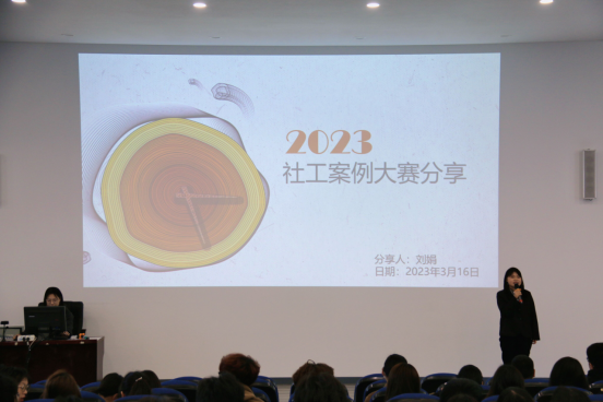 主持人介绍了本次大赛的规则:参赛队伍需要结合专业和生活实际,从需求评估、风险评估、理论与模式、介入方案、伦理问题等方面对所选案例进行介绍和分析,通过答辩和案例演绎的方式展示最终成果。活动中,上届社工案例分析大赛的代表刘娟讲解自己对社会工作专业的理解,分享自己参赛时的经验和感悟,她表示:“参加社工案例分析大赛是对自身学习成果的检验,比赛过程中自身的综合素质得到了提升。通过比赛,可以提升自身团队协作的能力,为进入职场打下基础。”仪式最后,上届参赛代表刘娟同学与本届参赛代表唐晓羽同学进行了交接仪式。