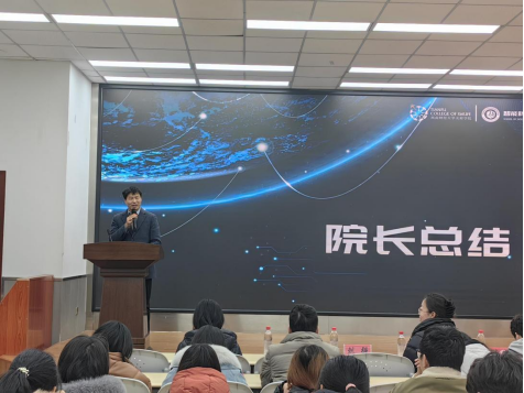 徐鸿雁进行总结发言。他表示,人工智能创新班的设立是学院教育教学改革和高水平交叉学科融合的一项重要举措。人工智能与传统学科的结合将有助于推动各领域的技术创新和应用拓展。学院将整合优质教育资源,为学生们提供更广阔的发展平台。同时,也希望同学们拿出“亮剑精神”,主动出击、努力学习,提高自己的学术水平和实践能力。