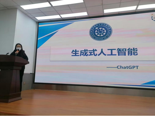 接着,董璐璐为创新班讲授了“开班第一课”。她为同学们普及了生成式人工智能的“前世今生”。为同学们介绍了什么是AIGC以及ChatGPT的发展历程,并介绍了AIGC与本专业的结合方法。