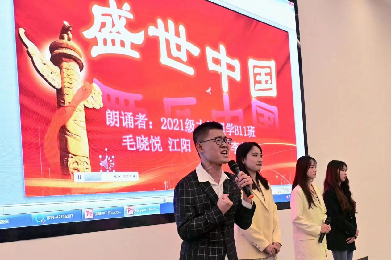 初赛阶段,学院全体学生踊跃报名,在线上积极提交参赛视频。经过初筛,共有13个队伍进入决赛。决赛现场气氛热烈,各参赛选手慷慨激昂,用真挚且饱含深情的朗诵诠释着诗歌中的字句,把对祖国的情感表达得淋漓尽致。各选手的精彩表现引得现场阵阵掌声,一次次将比赛氛围推向高潮。