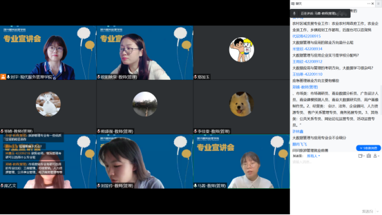 随后,各专业主讲教师围绕近年专业建设成果、就业升学数据、专业特色培育、专业就业趋势向带领2022级新生完成了对所就读专业的“初印象”描绘。最后,与会师生通过线上会议室聊天区进行专业答疑互动,同学们对所就读专业的未来职业规划、升学发展、课程学习等提出一系列问题,各专业参会老师给予细心答疑。