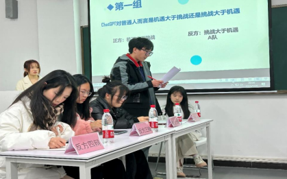 本次辩论赛由RPA财务机器人俱乐部成员梁静楠主持,周玉梅、杜姗、胡晓筱、张子贤担任评委。比赛开始梁静楠对此次辩论赛规则进行了介绍,此次辩论赛共8个辩论队参赛,需围绕“ChatGPT对于普通人而言是机遇大于挑战还是挑战大于机遇”“爱上人工智能算不算爱情”“人工智能将加剧或者减少世界的不公平现象”“会计行业是更需要人还是更需要机器人”四个主题开展辩论。