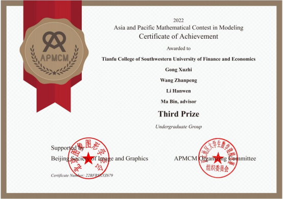 APMCM亚太地区大学生数学建模竞赛国家级三等奖