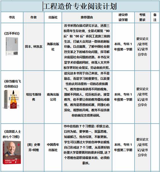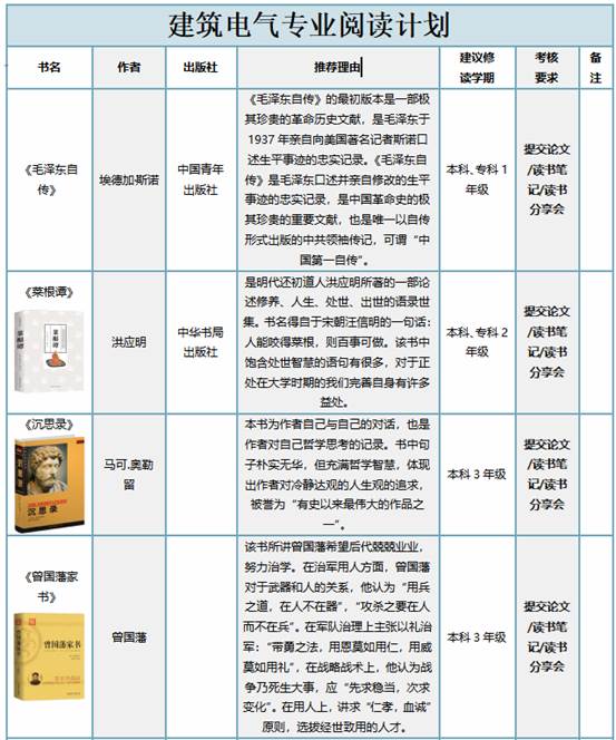 建筑与工程学院积极组织动员广大师生,组织各专业负责人根据学科和专业特色,结合人才培养目标需求,根据课程要求,结合学生专业,选取了以下与本课程关联密切的图书,列出了以下阅读清单。经建筑与工程学院教学指导委员会审核通过后,向全院学生发布各专业推荐书籍阅读清单,将阅读书目推荐给了学生,并开展了“读书笔记、阅读分享”等多种阅读活动。
