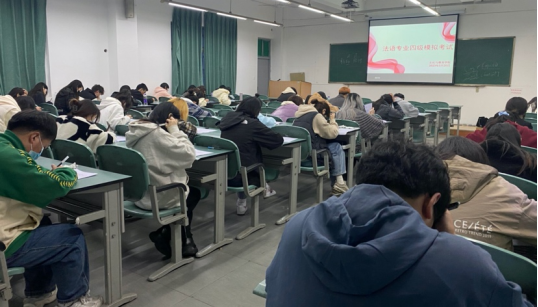 为鼓励学生备战2023年5月的全国高等学校法语专业四级等级考试,提高学生的应试能力,2023年3月20日晚,文化与教育学院在三教3414教室组织开展了2020级、2021级本科法语专业2023年春季学期第一次专业四级模拟考试,共计49名学生参加。