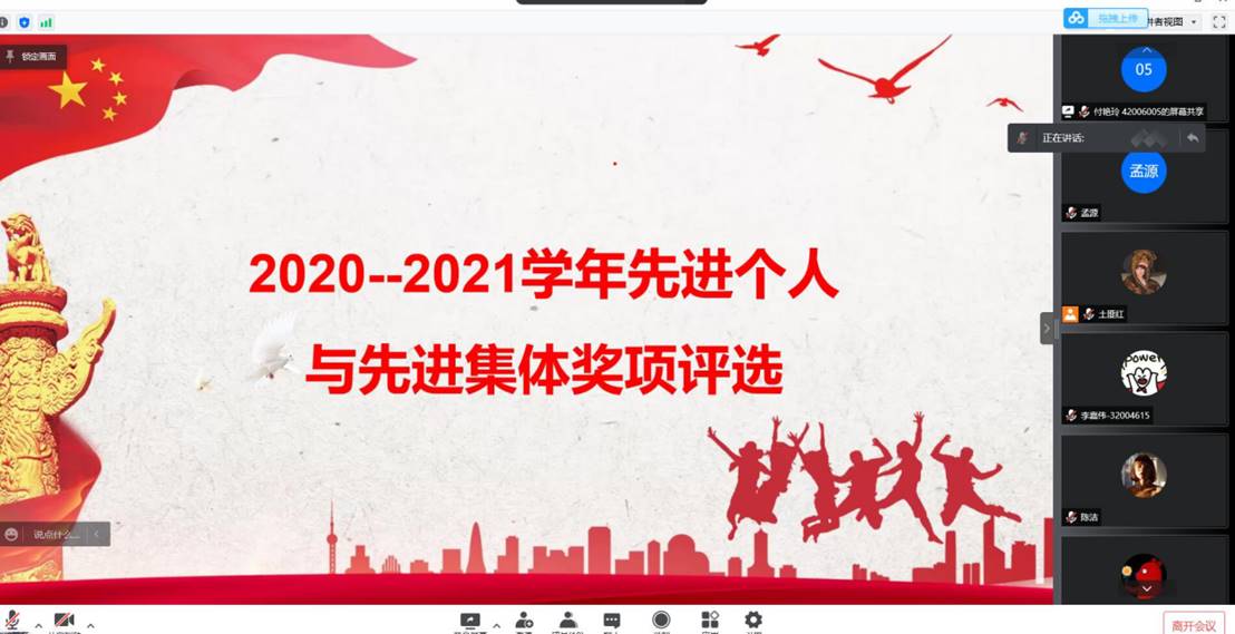 为全面推进素质教育,促进学生德、智、体协调发展,为广大学生树立身边的先进榜样。2022年2月28日,现代服务管理学院通过腾讯会议举行了2020-2021学年先进个人与先进集体评优答辩活动。现代服务管理学院党总支副书记倪娅,副院长高丹、副书记曾敏以及院长助理刘宇和全体辅导员参与本次答辩。