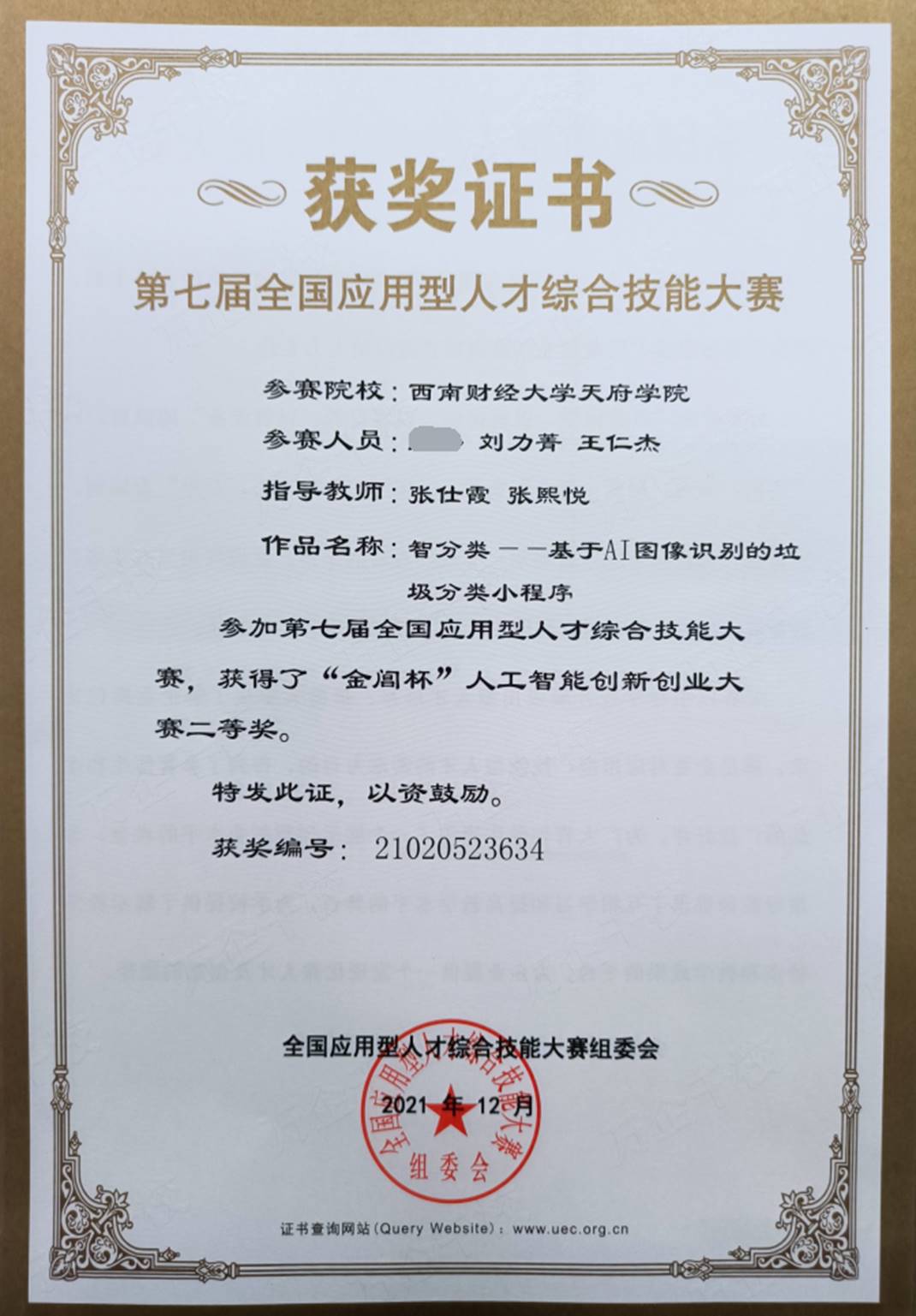 第七届全国应用型人才综合技能大赛“金阊杯”二等奖