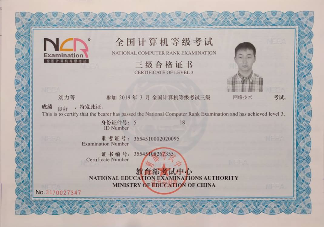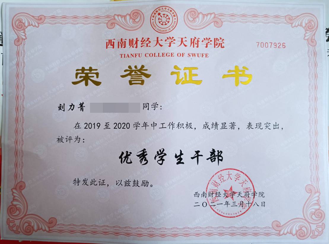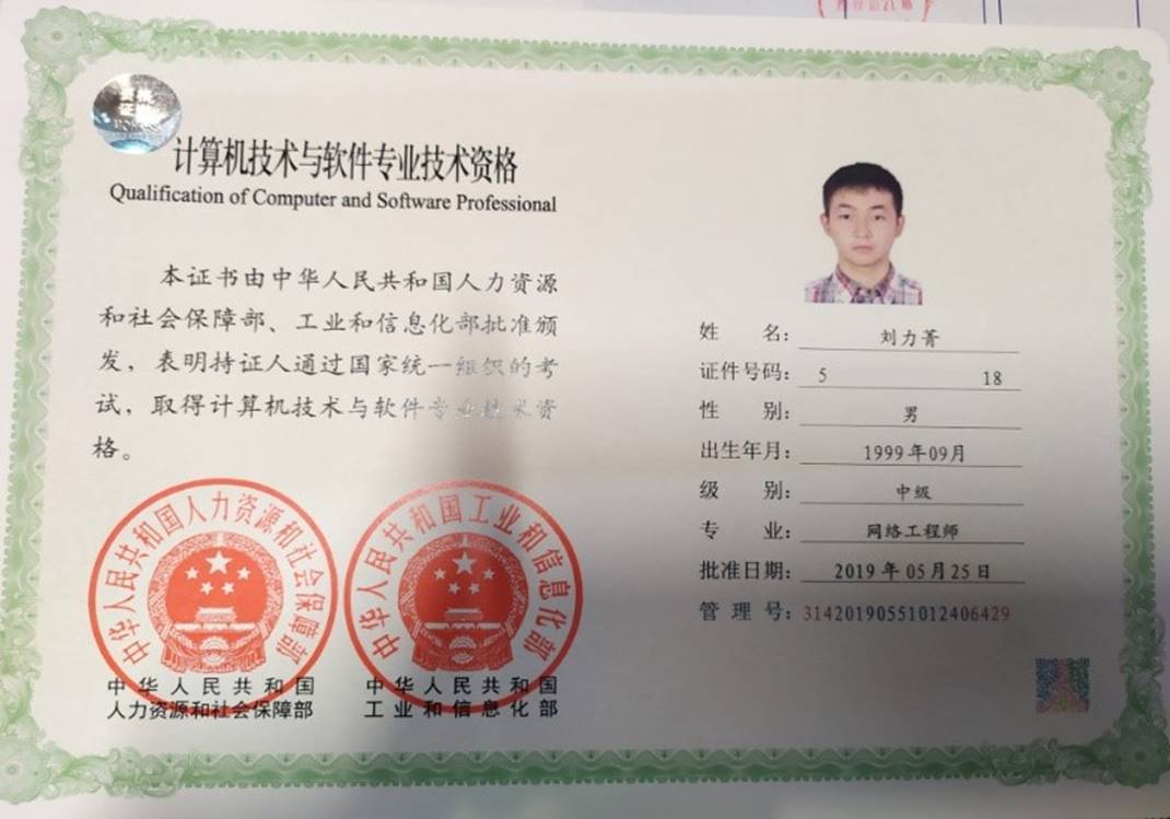 刘力菁,男,共青团员,就读于智能科技学院2019级本科计算机科学与技术专业01班。现担任易班工作站干事,曾任云计算实验室科研助理、班级生活委员。在校期间,荣获2019-2020学年优秀学生干部、四川省综合素质A级证书、第七届全国应用型人才综合技能大赛“金阊杯”二等奖、“发现杯”区域赛二等奖、2020年西财开云kaiyun体育争当宪法卫士活动一等奖、2021年智能科技学院学院“焊接大赛”三等奖,考取了网络工程师专业技术资格认证、全国计算机等级考试三级合格证书、广播电视编辑记者资格证书,2021年申请通过《网络测试分析软件》著作权。