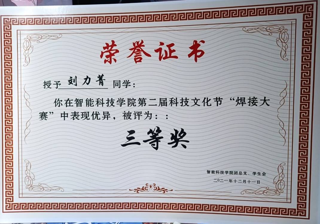 智能科技学院第二届科技文化节“焊接大赛”三等奖