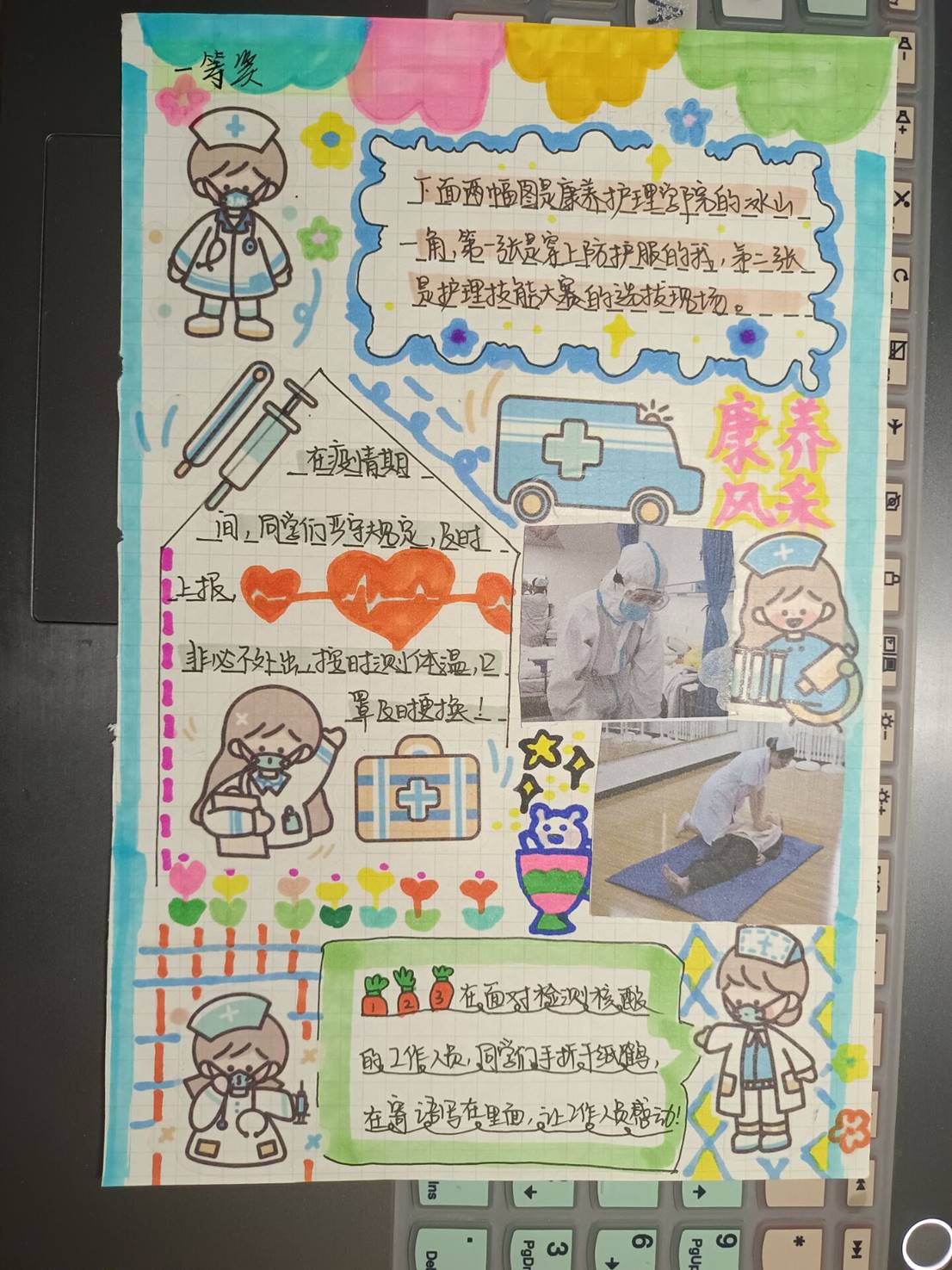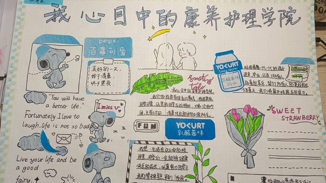 2022年4月3日至13日,康养护理学院开展了“我心目中的康养护理学院”手账制作活动。活动旨在加强校园文化建设,改善大学生的社会心理环境,展示同学们的正能量以及昂扬、积极的人生态度。