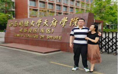 王瀚然与母亲在学校门口的合影