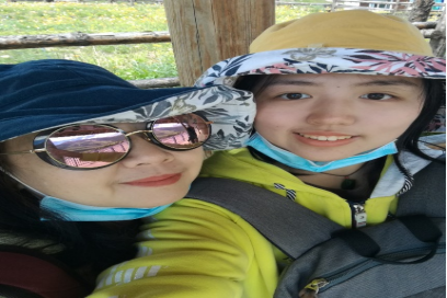 刘忻恬与母亲一起出去旅游