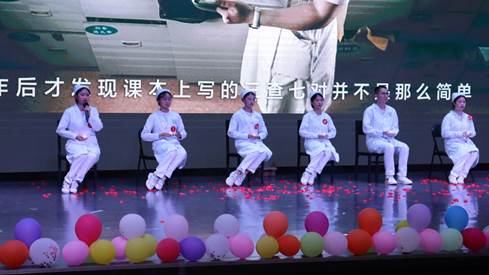 本次大赛表演中,各参赛队伍从仪容、仪表、站姿、行走、坐姿、拾物、端治疗盘、持病历夹、推治疗车以及结合情景剧等不同方面对护理礼仪进行了精彩的演绎。在优美的音乐声中比赛开始,参赛的白衣天使依次出场,她们面带微笑、穿着整洁、动作娴熟、步履轻盈,日常的坐立行走,在她们的演绎下变得美轮美奂。通过参赛作品的表演,向学院师生展示了护理礼仪的风采。整场比赛形式新颖活泼,内容丰富,涵盖文明礼仪、服务礼仪工作的各个主要环节。端庄得体的肢体语言和临床工作使用的文明用语,集中展示出白衣天使们的精神风貌和靓丽风采,精彩表演不时赢得阵阵的掌声。