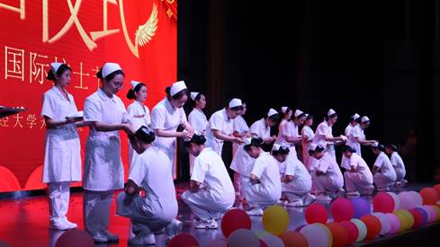 在参赛队伍演绎完成后,学院护理教研室的老师为学院护理学子进行了授帽仪式,护理学子按照顺序,迈着整齐而坚定的步伐走上舞台。老师为他们戴上圣洁的燕尾帽。庄严的宣誓中,铿锵有力的誓言让在场的全体人员感受到了生命的美好与护理事业的光荣使命,相信大家会更加坚定内心的信念,用青春与热血铺就未来护理事业的道路。