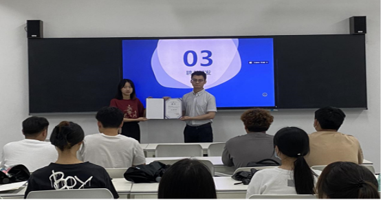 会议伊始,由办公室主任李昕芮宣读国际会计学生科研团队章程。其先后介绍了章程总则、活动范围、组织架构、资产管理及使用原则、内部管理制度等内容,并展开进行了详细要点说明。接着由各部门进行总结汇报,国际会计学生科研团队主席团、宣传部、组织部及办公室的学生负责人依次上场,通过数据结合、图文并茂等方式汇报了本学期开展的各项工作,突出工作亮点展示,并阐述存在的不足之处以及下一步需要采取的优化完善措施。最后,为体现学校学院对学生干部任职期间的积极工作表现和所作贡献的肯定,进一步鼓励组织成员奋发向上,刘桂江对会计学院国际会计学生科研团队的优秀干部进行了聘书颁发,并希望各学生干部不忘初心,砥砺前行,希冀各学生干事以干部为榜样,激励自己,努力进取。
