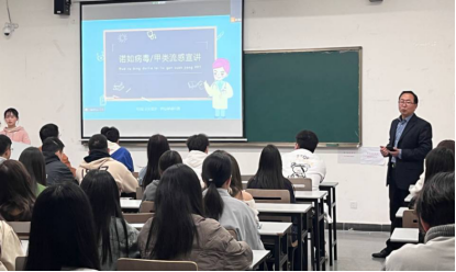 辅导员张长江进行诺如病毒和甲型流感知识宣讲