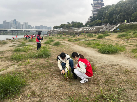 本次志愿活动主题为“减少污染-行动起来”。早8时许,一切准备完毕后,志愿者一起乘公交前往服务点。到达目的地后,组织人员做好安全事项讲解并点到确认参与人员,紧接着带领志愿者进行环保志愿活动:清理江边河堤垃圾,勘测水质情况并做好记录。队员们身穿红色马甲,手持垃圾袋,沿河岸绿化带拾捡草坪和小道上的纸巾、果皮、烟头等废弃物。成员间互相配合协调工作,每个人都变成“弯腰一族”。大家不怕脏,不怕累,争着捡,比着干,“走一路,捡一路”。