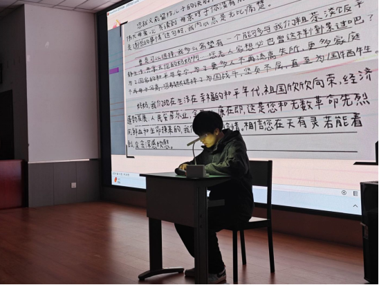 比赛展示内容方面,各个小组展示了不同英烈的红色家书,有革命烈士的绝笔信,有英雄儿女的述怀诗,有抗日将领的就义书等。展示方式上,有的小组采取朗诵的方式,表达家书情感,声情并茂;有的小组运用情景剧表演,开展时空对话,感人至深;有的小组原创给烈士回信,传承烈士遗志,弘扬英雄精神。六个小组用不同方式“穿越时空”,和台下学生一起领悟红色家书所承载的崇高理想与家国情怀,一起感受红色家书所蕴含的中国精神。