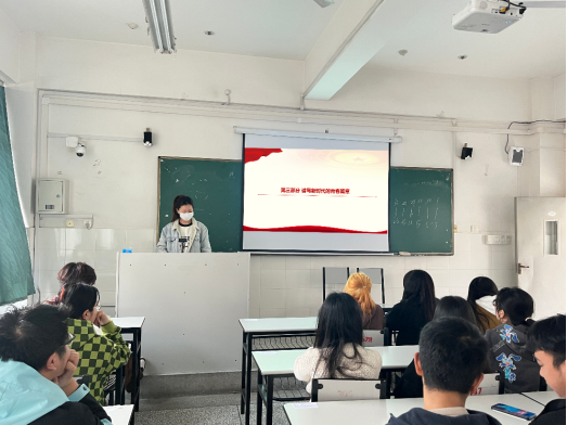2021级本环境设计04班团支书给同学们着重强调了主题团课的第三部分“谱写新时代的青春篇章”,何其有幸,生逢盛世。习近平总书记在中青年干部培训班开班式上讲话中明确强调,年轻干部生逢伟大时代,是党和国家事业发展的主力军,必须练好内功、提升修养,做到信念坚定、对党忠诚,注重实际、实事求是,勇于担当、善于作为,坚持原则、敢于斗争,严守规矩、不逾底线,勤学苦练、增强本领,努力成为可堪大用、能担重任的栋梁之才,不辜负党和人民期望和重托。团支书对同学们说到,奋斗是青春最亮丽的底色,行动是青年最有效的磨砺。有责任有担当,青春才会闪光。