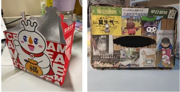 本次活动采取线上报名的方式,报名成功的同学将身边的无用之物,按照自己的心意改造成其他可以利用或观赏的物品,以再次使用。活动中,同学们发挥自己的想象,积极动手,如用废泡沫板作画、用卫生纸折玫瑰花、用纸板做收纳盒等,将旧事物进行充分地改造,在动手实践的同时,践行勤俭节约的中华传统美德,不浪费身边的各种可再利用资源。
