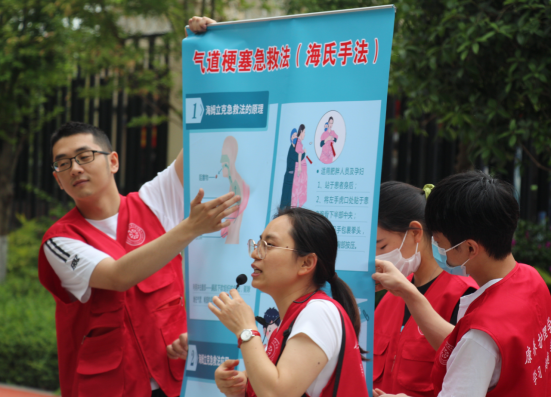 在理论知识宣讲环节,彭光燕用通俗易懂的语言讲解了什么是“海姆立克急救法”,强调了学习海姆立克急救的重要性,对被异物堵住气道时如何正确急救进行了示范。她说道:“海姆立克急救法是目前最有效的针对气道急性阻塞自救互救的一种方法,对不同人群施救方法不同,如何在呼吸道受阻后的最短时间自救互救是此次活动的重点。”彭光燕通过现场示范,手把手教授现场居民海姆立克急救方法。