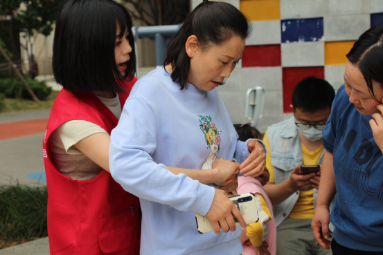实际演练环节,在志愿者的指引下,顺利进行了实践操作与模拟演练。针对居民提出的问题,老师和志愿者们一一耐心解答。参加活动的王阿姨说:“通过现场演练和互动问答,让我掌握了海姆立克急救法,活学活用,真正提高了我们在日常生活中自救互救的能力。”活动最后,彭光燕号召社区居民将急救知识融入生活,做急救知识的传播者,增加自身的急救知识储备。