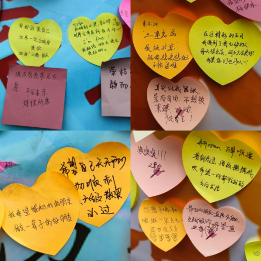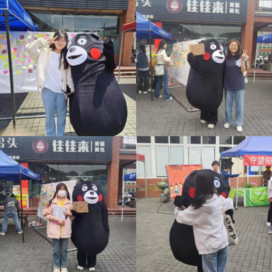 在活动现场,工作人员穿着可爱的玩偶服,热情欢迎同学们的参与。同学们可以在指定时间段前往,与玩偶拥抱或合影留念,感受活动带来的快乐。此外,同学们还可以在旁边的展板上写下自己的心愿或者生活中遇到的问题,其中一位同学写下了这样的话:“在这精彩的五月,遇到了心动的人,每天都很充实,明天只会更好,希望大家也可以!” 大家通过倾诉心声,放下烦恼,为即将到来的六月“蓄满电量”。