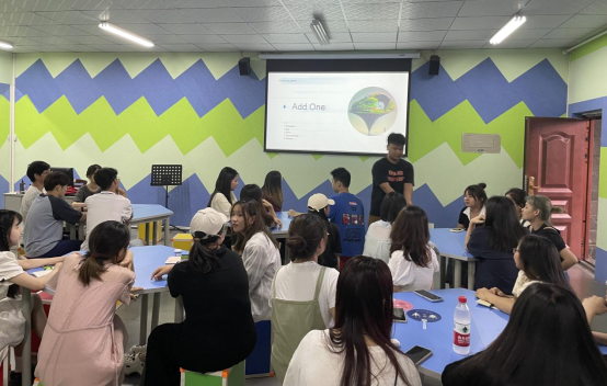 活动前期,为了提高同学们的参与度,主持人提前将主题PPT发给同学们进行相关准备。活动正式开始,主持人首先通过小游戏“Add One”调动现场气氛,即每位同学说出一个单词,要求最后连起来后是一个完整的句子。随后,主持人提出“未来是否愿意留居城市”的问题引导同学们思考,由此引出活动的主题——“Live or leave”。