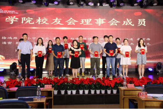 徐鸿雁(左一)为校友会理事会成员聘书颁发
