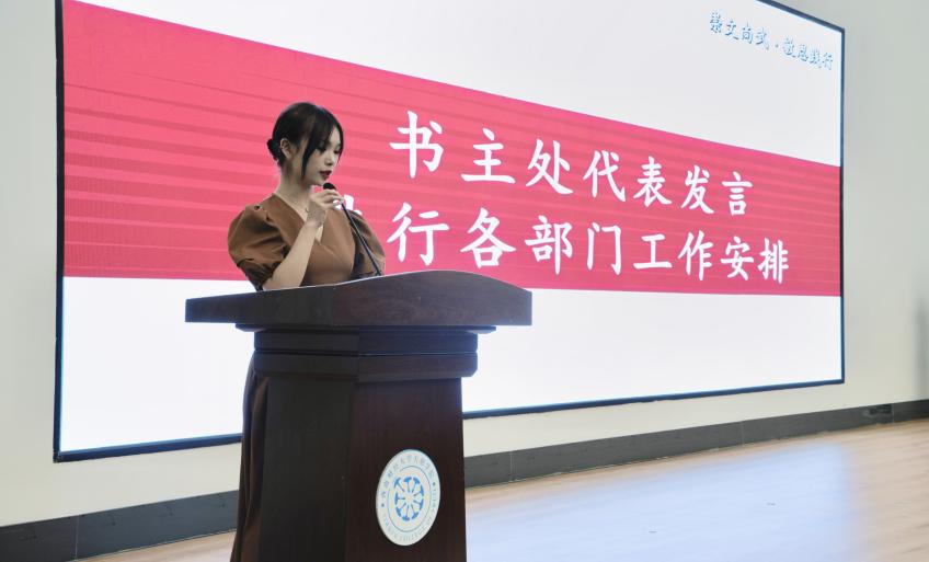 会上,各部门学生干部代表就前期迎新工作及招新工作进行了总结,对新学期工作计划进行了汇报。心理素质拓展中心杜甜甜指出,本学期的工作任务主要是开展心理专题讲座、心理答辩会及心理漫画设计大赛等活动,希望通过一系列内容丰富、形式多样、温馨感人的活动,营造出人人关注心理健康、重视心理健康的氛围。文艺部陈卓重点汇报了本学期的工作重点,如完成部门干事工作培训、学院迎新晚会及音乐节活动策划及开展。书主处詹雨洁表示,要制定并完善各项规章制度,做好各项常规工作;充分调动同学们的积极性,认真组织好各项活动;加强各部门之间的沟通交流,做到分工明确、责任到人、奖罚分明。