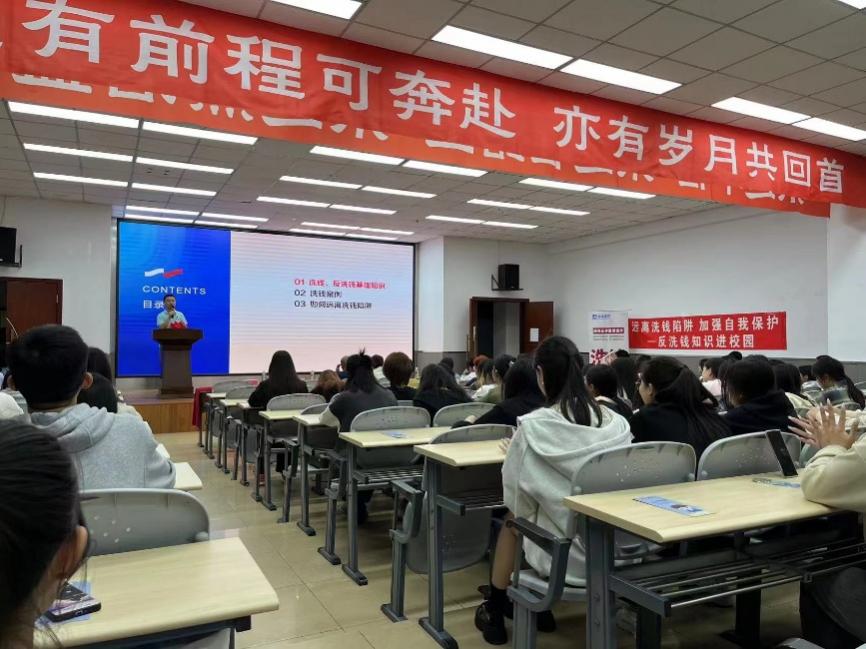 此次活动通过线上、线下相结合形式开展。讲座伊始,韩军通过引入真实的洗钱案例,为同学们介绍了洗钱、反洗钱的基础知识,讲解了“跑分”的原理。这些真实的案例让同学们警醒,更加明白洗钱对金融秩序的破坏和由此产生的惨痛结局。讲座过程中,还设置了有奖问答环节,充分调动了参与积极性,将现场氛围推向高潮。讲座最后,韩军告诫同学们要远离洗钱陷阱、保护好自身信息、积极举报洗钱行为,为维护社会经济安全稳定贡献力量。