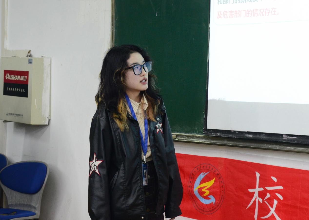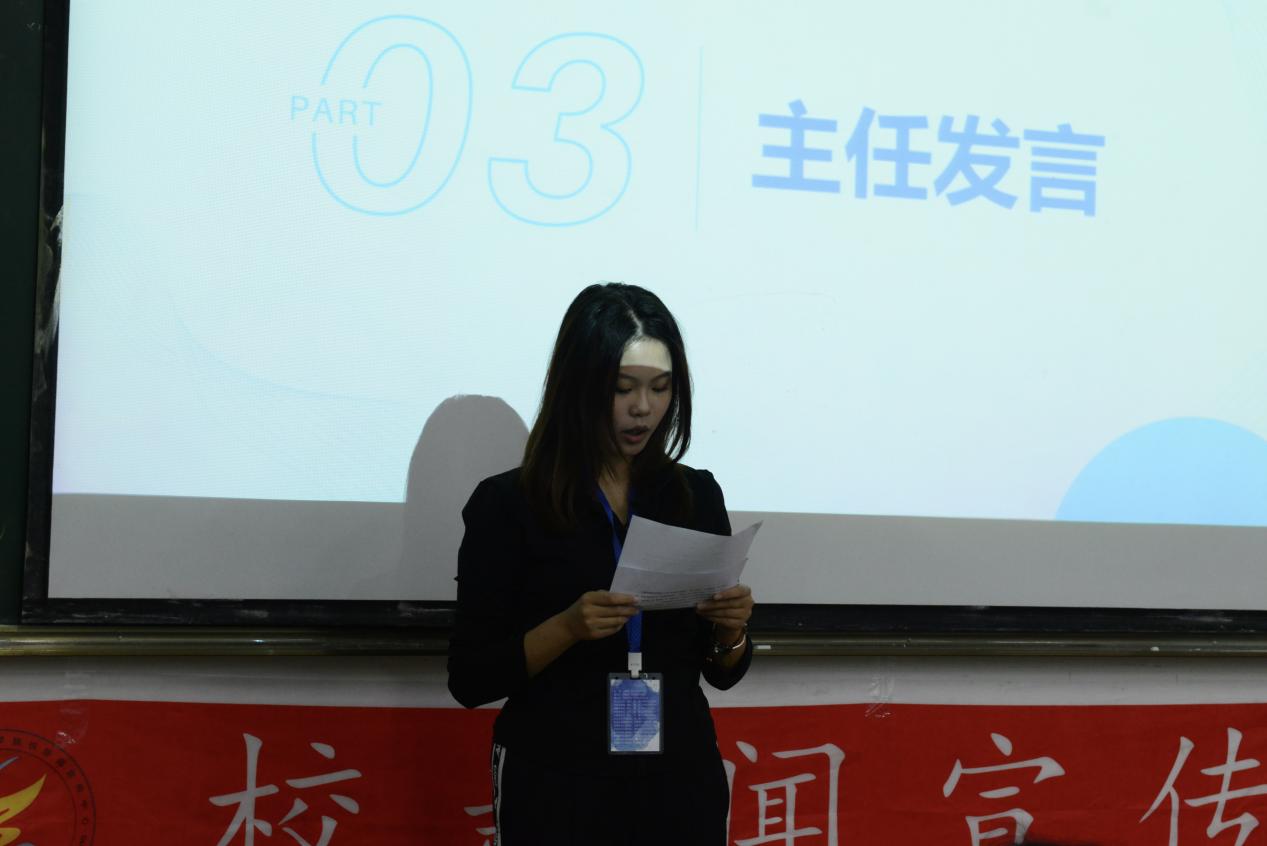 校新闻宣传中心副主任蔺钰用“新气象、新形式、新机遇”三个“新”来激励同学们对新闻宣传工作不忘初心,保持热情,突破自我。她表示新加入的成员们为校新闻宣传中心注入了新鲜血液,新的大家庭活力满满。她鼓励成员们抓住现实机遇,不断增强工作积极性,在校新闻宣传中心有所成长,成就不一样的自我。