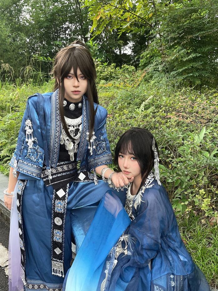 学生着民族服装合影留念