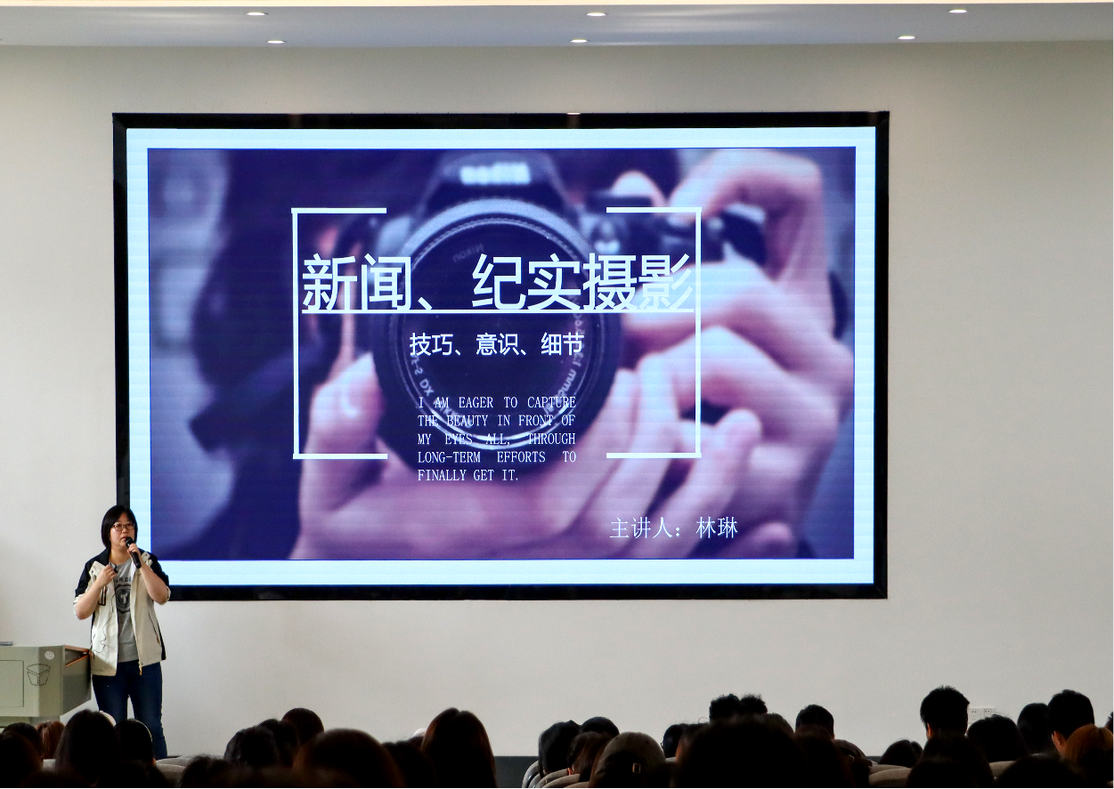 林琳介绍了新闻、纪实摄影准备工作的重要性,强调图片的质量很重要,要求拍摄者提前做好拍摄前的准备工作。林琳提出解决拍摄的问题,需要做以下准备:一是明确新闻图片的五个要素:时间,地点,人物,事件以及发生的原因,将其概括为拍摄主题;二是“我是摄影师,我有我的职责”;三是提前了解活动时的场景和内容,即提前阅读活动流程,做好拍摄的计划,拍摄前进行曝光测试,提前站好位置;四是提前构建画面,做好预判,并非随意抓拍;五是克服三个懒,懒得走、懒得想、懒得拍;六是摄影师应该注意细节。林琳指出摄影师需要做事有始有终。照片必须经过筛选,必要的图片要进行后期微调。她期望每位摄影师要善于发现美,让记录成为习惯,同时也要训练敏锐的观察力,感知美的能力。讲座后,同学们踊跃提问并得到了解答。