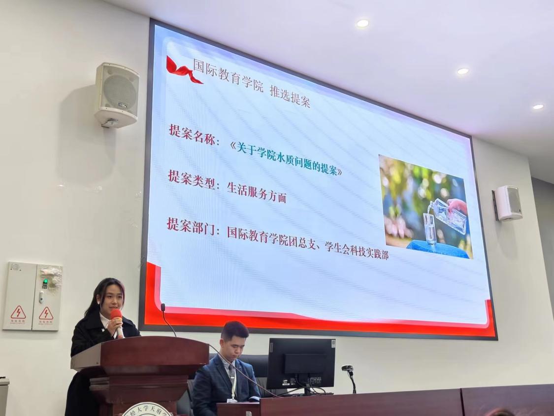 随后大会选举了国际教育学院第二届中国共产主义青年团团员代表大会提案。由学生代表推选提案,学生提案通过筛选最终提案为《关于食堂卫生安全的提案》及《关于学院水质问题的提案》,并通过投票选出上报提案。