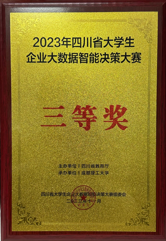 11月10日,由四川省教育厅主办,成都理工大学承办,金蝶精一信息科技服务有限公司技术支持的2023四川省大学生企业大数据智能决策大赛省赛落下帷幕。会计学院刘美伊、蔡燕、欧月芹、曹瑾枫、金桐、范明哲等18位同学,在学院教师付晨和曾帅带领下前往成都理工大学参赛,最终在本科组斩获四川省二等奖1项、四川省三等奖1项、四川省优秀奖1项,高职组斩获四川省二等奖1项、四川省三等奖1项、四川省优秀奖1项。
