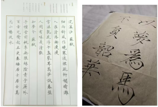 本次活动的形式多样、内容丰富,有“飞花令”“辨识易错常用字或阐述所给方言所表达的含义”“制作简体汉字书法作品”等。参与人员在“飞花令”的活动过程中,通过诗词接力领略汉字的韵律美;在辨识易错常用字中,通过识别区分易混淆的字词,走出易错常用字误区;以各地方言带领学院学生体悟语言的魅力,参与人员在面对不同的方言时,通过各种途径查找了解其背后含义;在书法作品制作中,学院学生通过软笔或硬笔,以各种字体写下自己喜欢的诗歌、文章或对未来的期望,其中梅兴乐同学用瘦金体写道:“以梦为马,不负韶华。”以文字表达了即使前路可能荆棘遍布、崎岖不平,也依旧砥砺前行的坚定信念,展示了其中蕴含的力量。