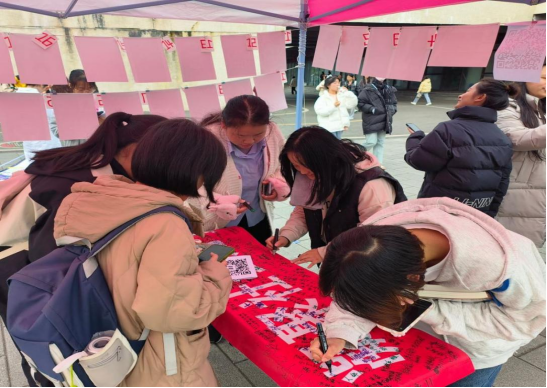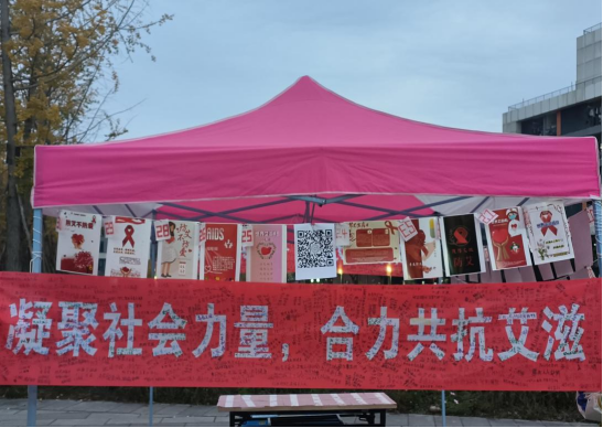 “青春防艾,你我偕行”海报设计大赛旨在积极开展防艾宣传,提升知艾防艾意识。活动有两种形式,形式一是制作防艾知识宣传海报,由工作人员对海报作品进行审核和评选,最终挑选出了30份优秀作品在线下展示,并在微信公众号进行投票。形式二是组织师生在“凝聚社会力量,合力共抗艾滋”的横幅上签名或写下宣传口号,用文字的力量助力宣传活动进行。