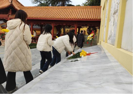 春风已解千层雪,后辈难忘先烈恩。结束参观后,全体师生向特级英雄黄继光献上菊花,党员同志面向特级英雄黄继光雕像重温入党誓词。最后,全体成员进行合影留念。