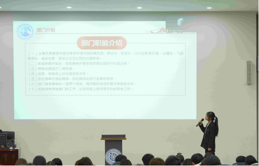 随后,团总支、学生会13个部门代表分别进行部门介绍与工作总结,详细介绍部门工作职责和成果,并对未来工作进行展望。干部们表示,将在今后的工作中秉持“学习、超越、担当”的院训精神,继续为团总支、学生会的发展贡献力量。